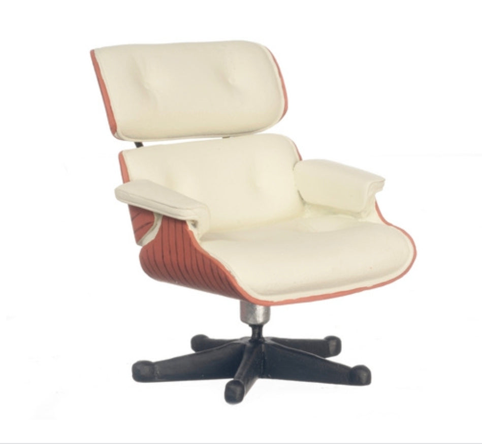 Your dolls or mice can relax in style in this cream-colored classic lounge chair replica.