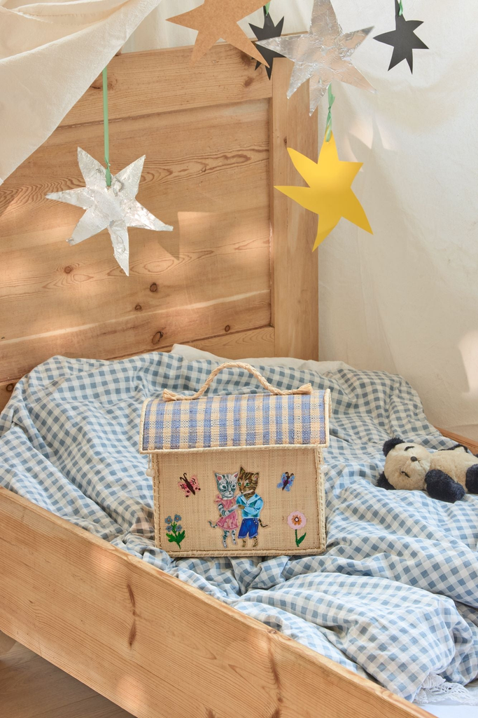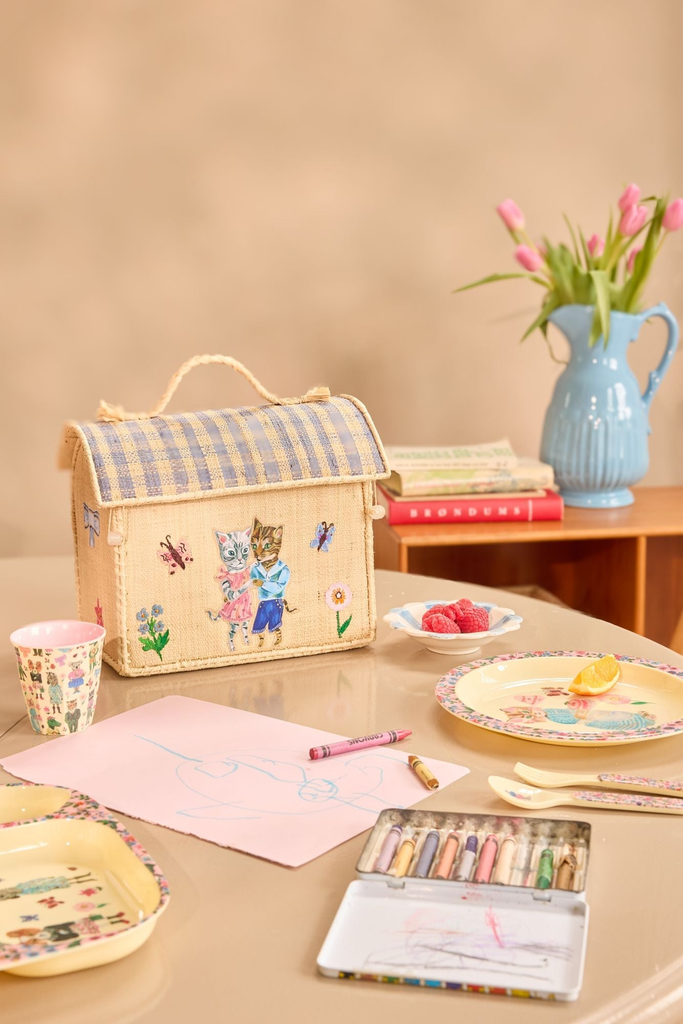 We love this raffia house-shaped handbag adorned with a sweet butterfly theme – complete with a convenient handle on top of the lid, perfect for little hands.