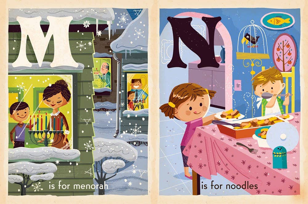Introduce your little one to the Festival of Lights in this fun collection of twenty-six illustrations featuring Hanukkah-themed concepts, such as latkes, gelt, the menorah, and of course dreidels.
