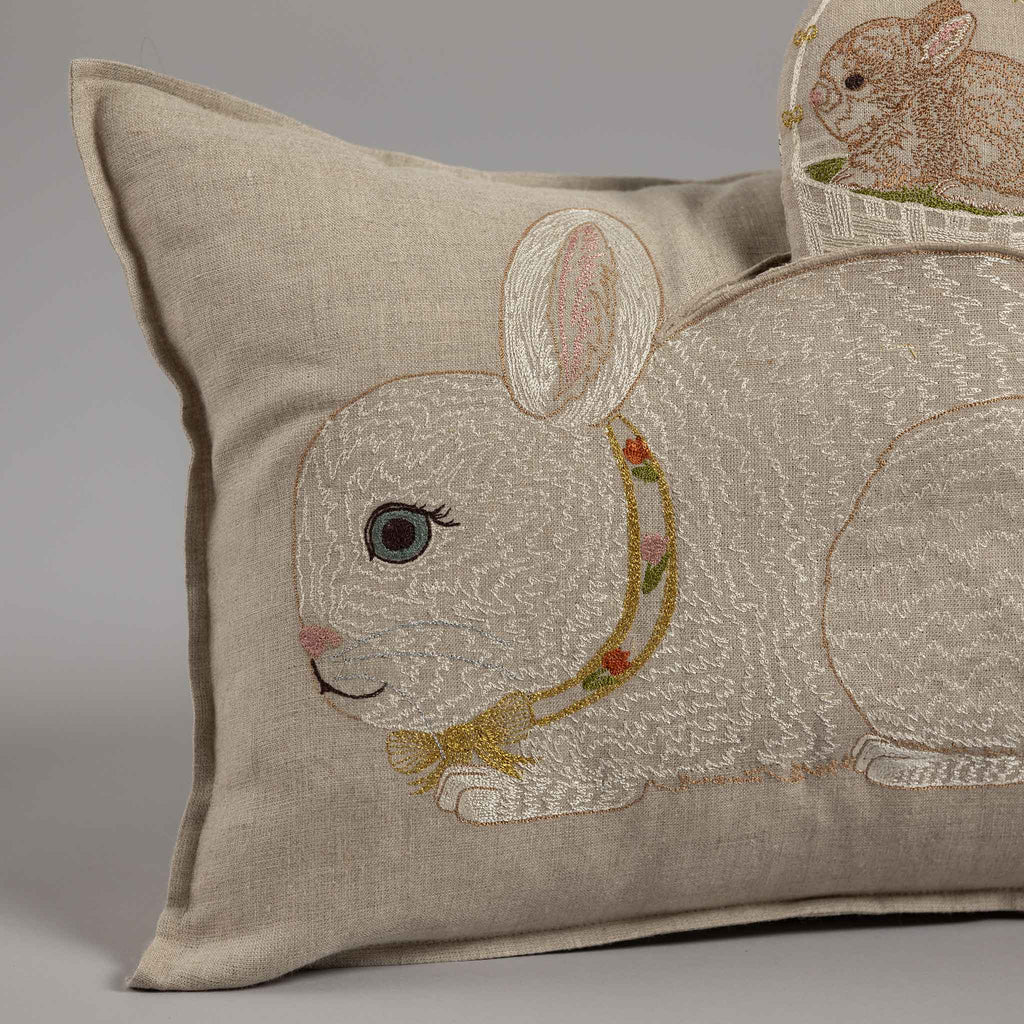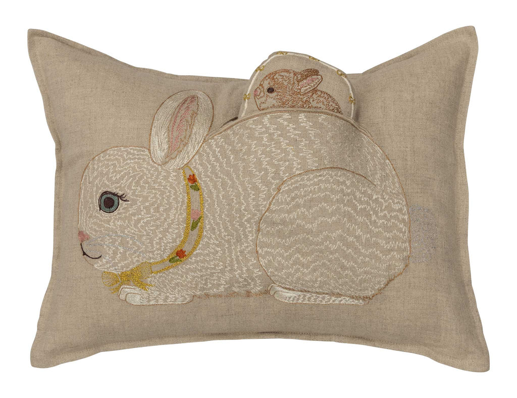 Here comes Bunny hopping down the trail! Our new Easter design features a life-size bunny embroidered in dazzling blue, gold, silver, pink, and white threads. A secret pocket is stitched on top, look inside and find a baby bunny! The baby bunny sits in a white basket, waiting for the Easter egg hunt.